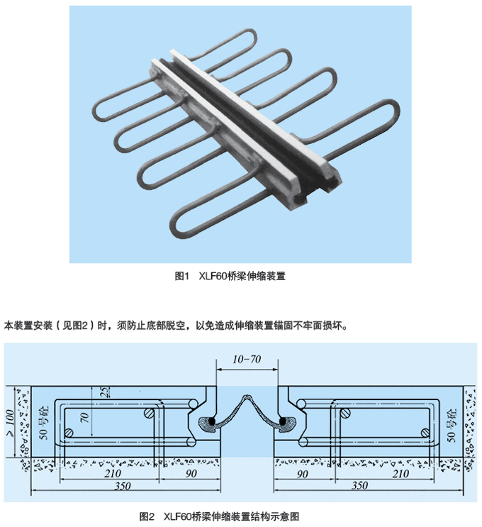 設計伸縮置為0^60mm,其結(jié)構(gòu)簡單、堅固附用、行車平衡,適用于中小橋梁。(圖1)